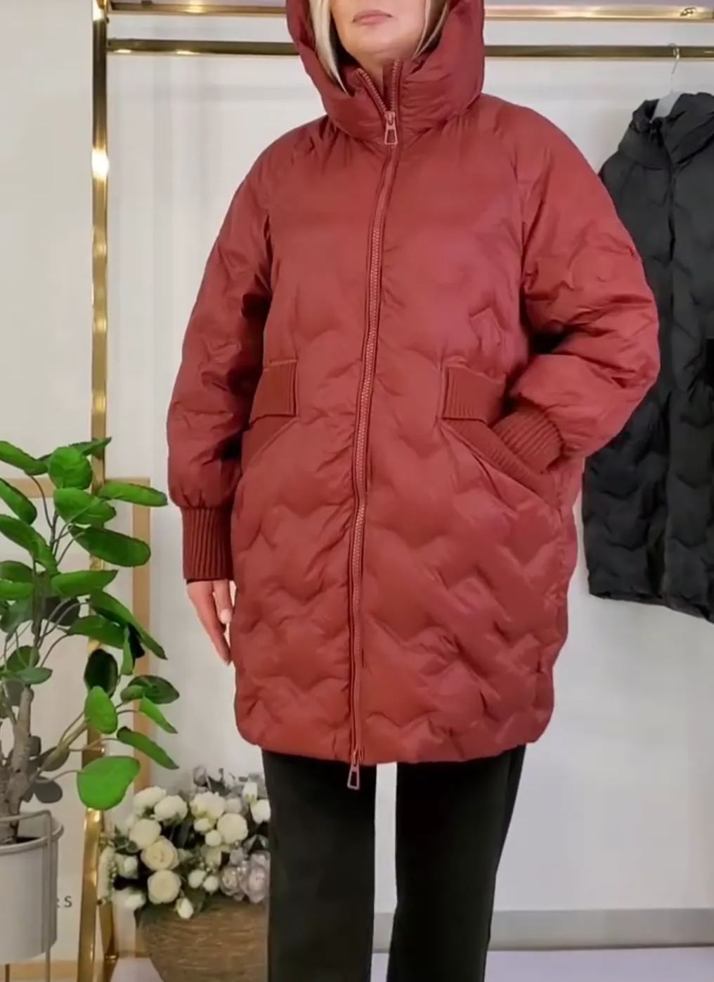 Cappotto imbottito oversize nero con cappuccio e tasche a toppa