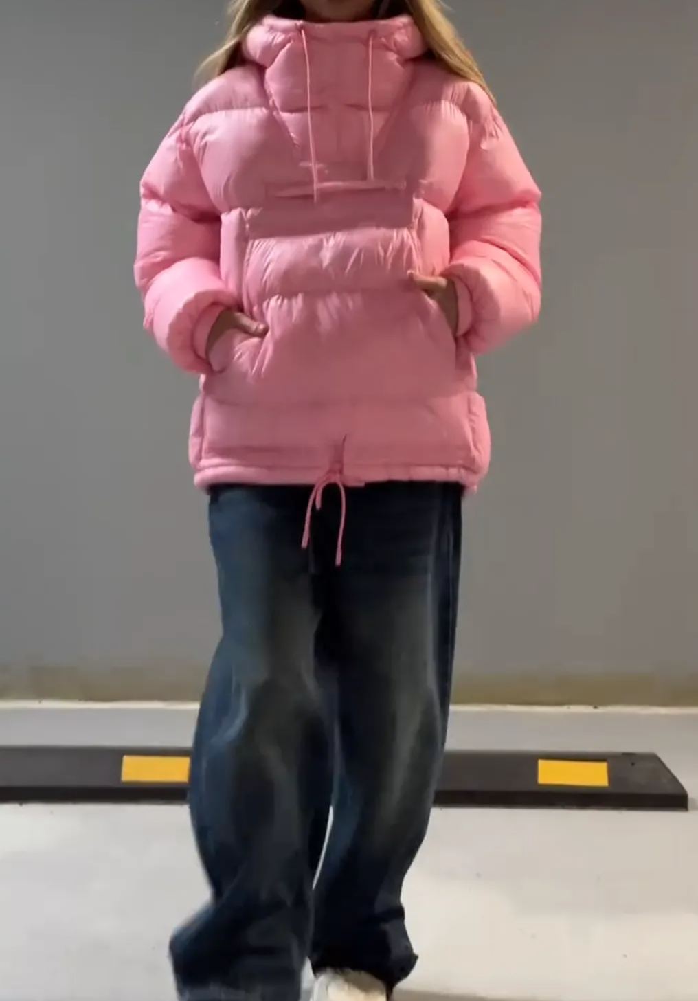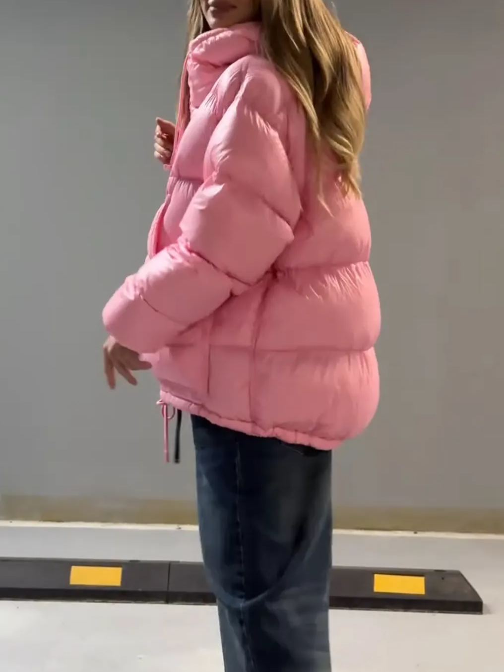 Piumino grigio con cappuccio oversize in pelliccia sintetica