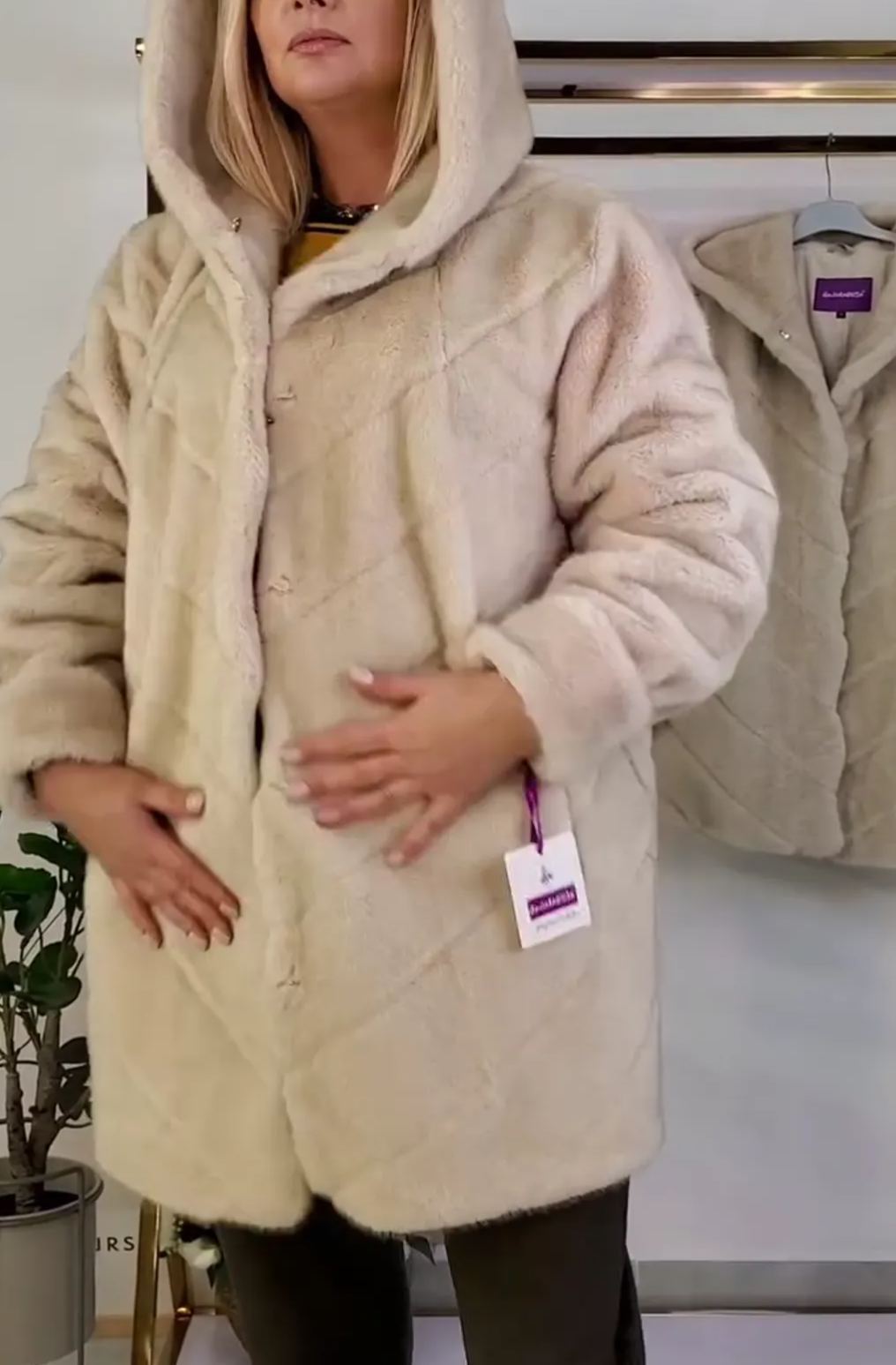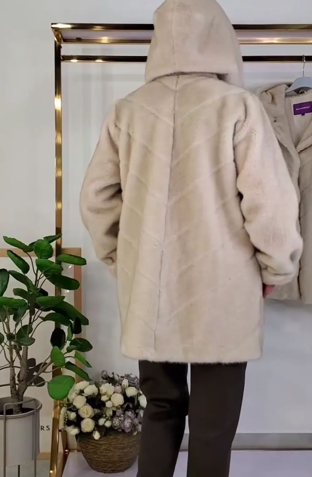 Beige Faux Fur Hooded Long Coat