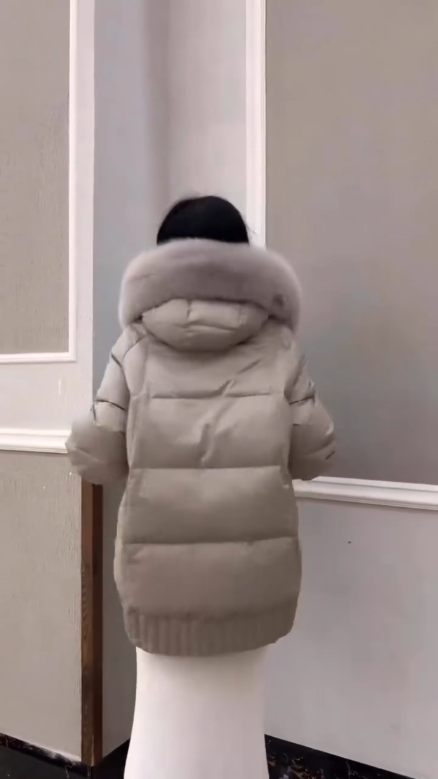 Giacca Puffer Grigia Chiara con Cappuccio in Pelliccia Sintetica Oversize